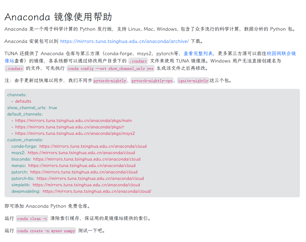 再次来到清华源:https://mirror.tuna.tsinghua.edu.cn/help/anaconda/