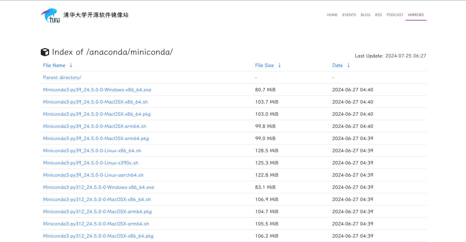 这里选择从清华源下载:https://mirrors.tuna.tsinghua.edu.cn/anaconda/miniconda/?C=M&O=D