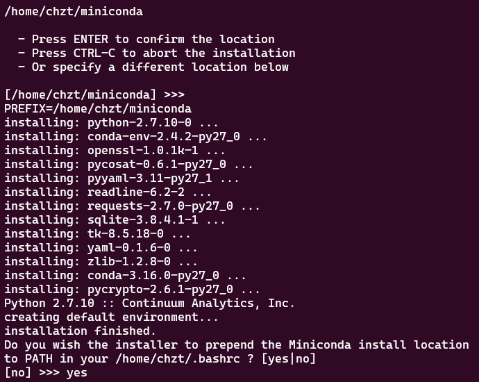 突然有需要在Linux系统(WSL,Windows下的Linux子系统)里安装conda(这次安装的是miniconda3),记录一下备忘。