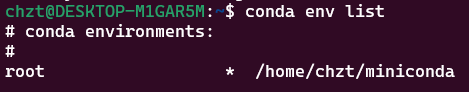 安装完conda会有一个默认环境root,可以输入命令conda env list来查看。