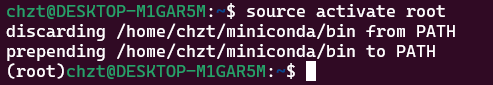 在Linux中激活环境的命令为source activate <环境名>,所以我们输入命令source activate root来激活环境root。