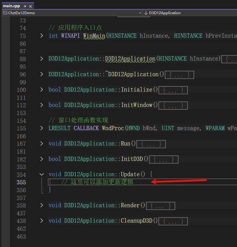 如果要写页面的更新逻辑,请写到D3D12Application类的Update()函数里面